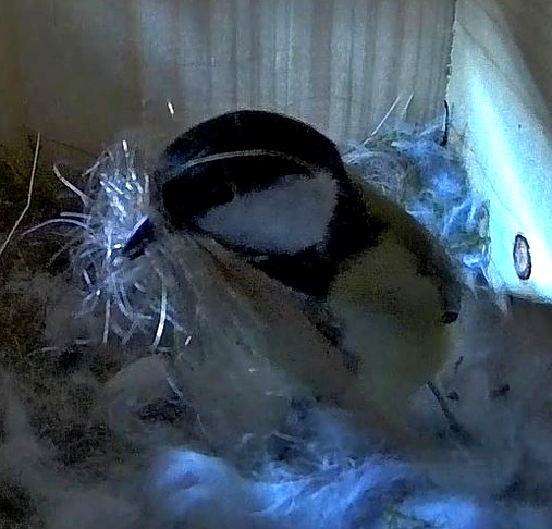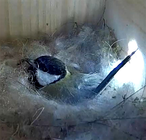 11.04.22 - Mama Kohlmeise beginnt auf 9 Eiern zu brüten