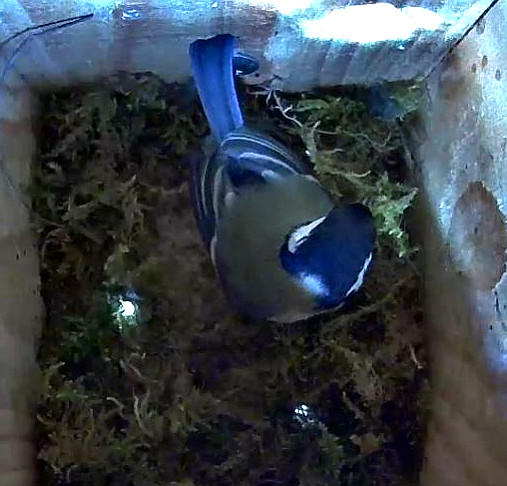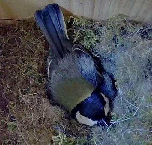 Man könnte fast meinen, sie hat die Brutvorbereitungen bewusst in die Länge gezogen. Denn wenn nun alles nach Plan verläuft, würden ihre Küken genau dann schlüpfen, wenn die jungen Kohlmeisen im Nistkasten-2 ausfliegen. Dann wäre die Konkurrenz erst einmal für längere Zeit unterwegs und sie hätte mehr Ruhe bei der Aufzucht ihrer Küken.