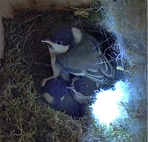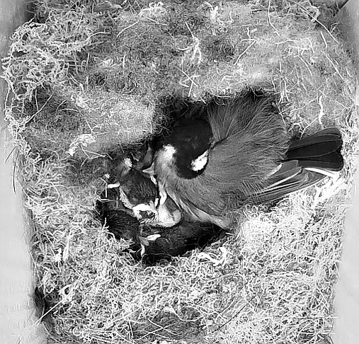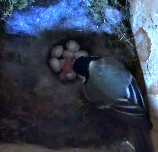 08.05.23 - Die ersten von 9 Kohlmeisenküken schlüpfen
