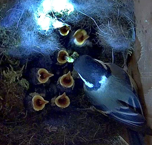 Die Vogeleltern verhalten sich vorbildlich. Beide Elternteile füttern regelmäßig. Mama Kohli ist zusätzlich noch mit Hudern und der Nestpflege beschäftigt. Die Zufütterung mit Buffalowürmchen klappt auch gut. So kann es gerne weitergehen. 😊